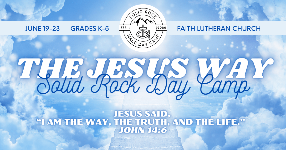 $75 per child. A $50 non-refundable deposit is requested at time of registration. The $25 balance is due by June 1. Please make checks payable to Faith Lutheran Church and be sure to write “Solid Rock – [Child’s Name]” on the FOR line. If your child(ren) need(s) scholarship support, speak with Vicki Fink or Jeff Mills.